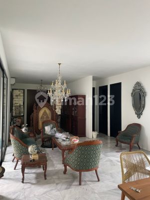 Dijual rumah 1 lantai di Lebak Bulus Lt 730 m2 Lb 350 m2 1 lantai KT 4+1 KM 3+1 SHM Hadap Utara Listrik 3,000 watt Garasi 2 mobil Carport 4 mobil Halaman depan dan belakang Ada 2 sertifikat, luas 596 m2 dan 134 m2. Bisa beli yang 596 m2 saja