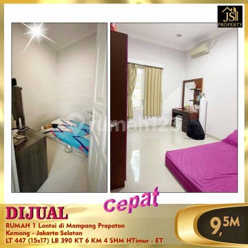 DIJUAL RUMAH 1 Lantai di Mampang Prapatan Kemang - Jakarta Selatan * Swimming Pool * Daerah Perkantoran * Dekat banyak Mall * Strategis Luas Tanah 447 m² Dimensi 15x17 m² Luas Bangunan 390 m² 1 Lantai Kamar Tidur 4 + 2 ART Kamar Mandi 4 Semi Furnish Listrik 5.500 Watt Air Sumur Bor Sertifikat SHM Hadap Timur Harga 9,5 M Nego - ET