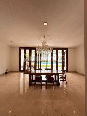 Lt. 1230m Lb. 650m 5 KT extra 1 Office Room 5 KM listrik 23 KWH PDAM FULL Marmer Private Pool Garden semi Furnished security sistem ; cctv Alarm system fire detector Harga Jual ; 35 M Nego mrta wd efgs