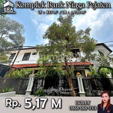 INFO LISTING - L03 RUMAH ASRI LOKASI TENANG KOMPLEK BANK NIAGA PEJATEN PASAR MINGGU JAKSEL Alamat: Komplek Bank Niaga Jl. Niaga Kel. Pejaten Barat Kec. Pasar Minggu JakSel Detail Properti: - Luas Tanah : 437 m² - Luas Bangunan : ± 720 m² Harga: Rp. 5,17 M (CASH ONLY) Harga BELUM Termasuk Pengosongan dan Balik Nama. (Harga di atas belum termasuk BPHTB 5%, biaya lelang 2%, PPN 1%, dan PBB jika ada) Aset dijual apa adanya / as is **Kenapa Memilih Kami?** Dengan pengalaman 12 tahun di bidang lelang, kami menyediakan solusi satu atap untuk semua transaksi properti Anda. Proses yang jelas dan bersih sehingga Anda bisa tenang hingga serah terima. Hubungi Kami untuk Info Lebih Lanjut: - Holly: 081818xxxx - Ferry: 0816116xxxxRumahmodern #RumahdijualPejaten #Rumahmewah #Rumahasri #Rumahminimalis #JakartaSelatan #KomplekBankNiaga #PasarMinggu #Pejaten