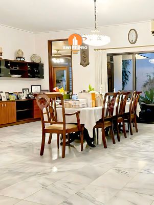 • Luas tanah 1.102m2 • Luas bangunan 708m2 • Kamar tidur 5 • Kamar mandi 5 (semua didalam) • Kamar tidur ART 2 • Kamar mandi ART • Ruang tamu • Ruang makan • Ruang keluarga • Ruang perpustakaan • Dapur bersih Dan dapur kotor • Gudang • Listrik 11.000 watt • Garasi 2 mobil • Carport 4 mobil • kolam renang (sudah tidak terpakai, sekarang jadi kolam ikan & kamar bilas) • Hadap Timur