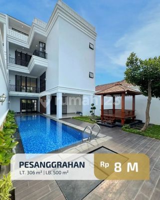 FOR SALE - PESANGGRAHAN BRAND NEW HOUSE Luas Tanah 306 m2 Luas Bangunan 500 m2 Bangunan 3 lantai + Rooftop Kamar Tidur 4 Kamar Mandi 4 Kamar Tidur Pembantu 1 Kamar Mandi Pembantu 1 Swimming Pool Gazebo Taman Belakang Dapur Bersih & Kotor Listrik 6.500 watt Air Jetpump Garasi 2 mobil Carport 2 mobil SHM & IMB PRICE : IDR 8 MILIAR (NEGO)