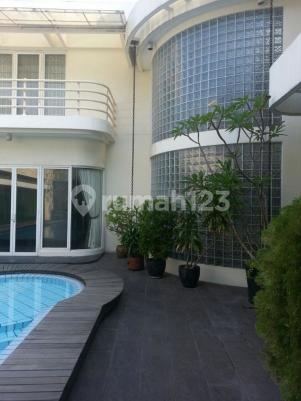 SHM LT 1000 m2 LB 900 m2 Harga turun banyak menjadi hanya Rp. 40 Milyar dan masih bisa nego sampai deal karena pemilik sudah senior dan tinggal di LN Hadap Barat Lebar muka 15 mtr, bentuk mengantong Listrik 33.000 watt KT 4+2 KM 4+1 Swimming Pool Fully furnished kecuali private belongings, piano, paintings dan printings Bebas dari banjir Design oleh arsitek Jerman dan Master Fengshui Hongkong