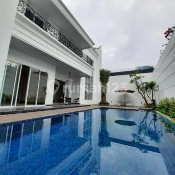 Dijual cepat rumah baru dan mewah di Pondok Indah, Jakarta Selatan Land certificate 627 m² Building space ±1.050 m². Facing South. Calm, peaceful, and private environment. 24-Hour Security in the area. New Building 2.5 Stories 5+2 Bedrooms 5+3 Bathrooms Guest bathroom/Powder room Kitchen and pantry Swimming pool with a wide patio for poolside parties Garage/Carport with 5-car capacity Private security post Luxurious building specifications using high quality materials: *Full Italian marble flooring *Spain marble stairs featuring solid wrought iron railing *Solid wrought iron front gate and main door *Interior doors and frames uses 5 cm Camphor oven wood with Duco finishing *Aluminium window frame YKK Nexta Ex. Japan *Zincalume roof skeleton *Imported USA Tamko Roof with 20-year warranty *Modern classic high ceiling design *Bathroom with fully imported marble and mosaic *Imported Kohler and Grohe sanitary *2-person bathtub with jacuzzi feature in the Master Bedroom *LED and crystal lights *Full mosaic swimming pool complete with both indoor and outdoor shower Harga 45 Miliar Hubungi Margie 0895xxxxxxxx