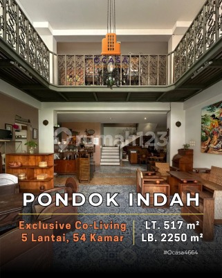 FOR SALE - ARTERI PONDOK INDAH EXCLUSIVE CO-LIVING / KOST EKSLUSIVE Dekat Pondok Indah Mall & Gandaria City Mall Luas Tanah 517 m² Luas Bangunan 2250 m² Bangunan Tahun 2017 Bangunan Secondary 5 Lantai Hadap Timur IMB ijin Rumah Kost SHM Type Room ( 54 Kamar ) * Studio 34 Kamar ( harga sewa 3,75jt/bln ) * Excelsior 16 Kamar ( harga sewa 5,75/bln ) * Penthouse 4 Kamar ( harga sewa 7,75/bln ) Fasilitas: * Lobby * Listrik token per kamar * Private meeting room * Private living room * Dinning room * Cafetaria * Rooftop * CCTV * Space for lift * Basement 25 Mobil & 20 motor Harga Rp 35 M Ocasa4664 MENERIMA TITIPAN JUAL PROPERTY AREA JAKARTA & SEKITARNYA. HUB MELY 08787850xxxx