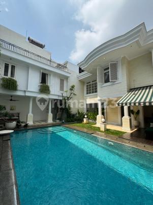 For Rent Rumah di Pondok Indah . LT: 422 m2 LB: 650 m2 KT: 4 KM: 3 & 1 (Powder Room) Kamar Pembantu: 2 Kamar mandi Pembantu: 1 Kamar Driver/gudang (bawah) : 3 Kamar Mandi Driver : 1 Kamar Setrika : 1 Dapur bersih Dapur kotor Garasi 2 mobil Carport 2 mobil Listrik 23 rb watt Fully Furnished Ada Swimming Pool . Lt 1 Living Room Dry Kitchen Wet Kitchen Dining Room 1Bathroom Luar 1 Bedroom + Kamar Mandi dalam Swimming Pool + Deck . Lt 2 - 1 Master Bedroom - Walk-in Closet - Master Bathroom - 1 Kamar + Ruang Belajar - 1 Bathroom Luar . Price: $5500 /month (Negotiable) . Notes: - Minimum sewa 2 tahun - Hadap Barat - Dekat dengan RSPI Pondok Indah dan JIS
