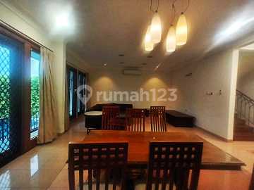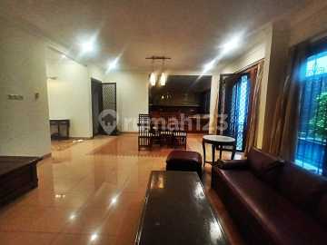 For rent pondok indah Luas tanah300 Luas bangunan250 3bdrm +1study Semi Furnished Pool, lokasi tenang, depan taman 400jt/tahun nego