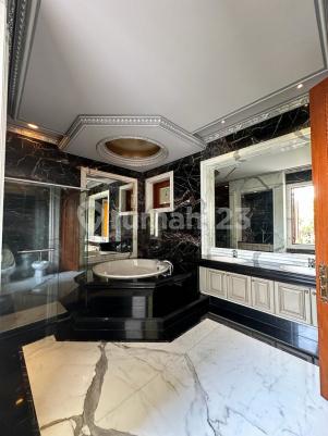 In Bukit Indah Golf Pondok Indah With private pool, lift, and spacious garden Lt. 1450 m2 Lb. 1600 m2 1 private lift Classic Stairway Electric 23.000 watt Genset Swimming pool 1st floor : 1 bedroom + bathroom 1 function room 1 library room 1 powder room 1 dry kitchen 1 wet kitchen 1 dinning room 1 living room 1 starway 1 private lift 1 foyer room 1 guest room 1 backyard 1 terrace 1 swimming pool 2nd floor : Family room 3 bedrooms + 3 bathrooms 1 powder room 1 function roon Hallway Living room Balcony and terrace Basement : 8 cars lot in basement garace 4 cars lot in main terace 2 maid rooms 2 driver rooms 1 kitchen for maid 1 security post 2 bathrooms 1 service room 2 storage Sertifikat SHM Renting price : Usd 15.500 / month Negotiable Selling Price : 270 M Negotiable Direct : da/ivn