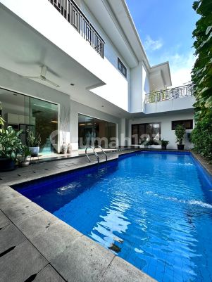 FOR SALE PONDOK INDAH DEKAT BUKIT GOLF SEMI FURNISHED Row Jalan Lebar Lokasi Aman & Tenang Siap Huni one Gate Luas Tamah 605 m2 Luas Bangunan +\- 950 m2 Bangunan 2,5 lantai Kamar Tidur 5 Kamar Mandi 6 Kamar Tidur Pembantu 4 Kamar Mandi Pembantu 1 Swimming Pool Ruang Kerja Dapur Bersih & Kotor Garden Service Area Garasi 4 mobil Carport 2 mobil Hadap Tenggara SHM & IMB Harga Jual Rp 38 M KPR / CASH more info : SURVEY CALL / WA 0813xxxxxxxx