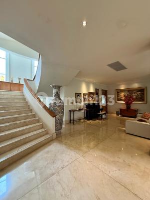 RT Pondok Indah JL. Bukit Golf (housing complex surrounded by Pondok Indah Golf Course) LT: 1.430 m2 LB: 1.220 m2 1 Master Bedroom (WIC, balcony, ensuite bathroom w jacuzzi) 4 Kamar Tidur (all en-suite bathroom& WIC) 1 Powder Room 1 Work/Study room with Japanese Tatami Corner 1 Semi-Outdoor Backporch 1 Hobby Room 2 Storage rooms 1 Home-Theater room Basement Separate Area for maids (3 maids bedroom, bathroom, and open-function area) Basement parking 8 (eight) cars Independent Multi-Floor Side-Access for maid/maintenance Daikin VRV AC System 55,000VA Generator Set Multi-stage Water Pressure System Harga 120 M