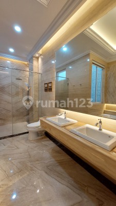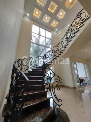 Luas tanah 627 m²/ Luas bangunan ±1.050 m². Menghadap Selatan. Lingkungan tenang, damai, dan privat. Keamanan 24 Jam di area. Bangunan baru 2,5 Lantai 5+2 Kamar Tidur 5+3 Kamar Mandi Kamar mandi tamu/Ruang bedak Dapur dan pantry Kolam renang dengan teras luas untuk pesta di tepi kolam renang Garasi/Carport dengan kapasitas 5 mobil Pos keamanan swasta Spesifikasi bangunan mewah dengan menggunakan material berkualitas tinggi : -Lantai marmer Italia penuh - Tangga marmer Spanyol menampilkan pagar besi tempa yang kokoh - Gerbang depan dan pintu utama besi tempa solid - Pintu dan kusen interior menggunakan kayu Camphor oven 5 cm dengan finishing Duco -Kusen jendela aluminium YKK Nexta Ex. Jepang - Kerangka atap seng - Atap Tamko USA yang diimpor dengan garansi 20 tahun -Desain langit-langit tinggi klasik modern -Kamar mandi dengan marmer dan mozaik yang sepenuhnya diimpor -Impor sanitasi Kohler dan Grohe - Bak mandi untuk 2 orang dengan fitur jacuzzi di Kamar Tidur Utama -LED & lampu kristal -Kolam renang full.