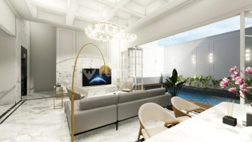 Rumah Brand new classic modern Prime location Pondok Indah, Jakarta Selatan n1030 Swimming Pool Marmer Import Hadap Timur Selatan Luas tanah 448 m2 Luas bangunan 600 m2 Bangunan 3 lantai Kamar tidur 5 Kamar mandi 5 Harga inden 10-12 bulan 27.500.000.xxx,- negotiable Sertifikat SHM GP Real Estate Nico 081110xxxx hp & wa )