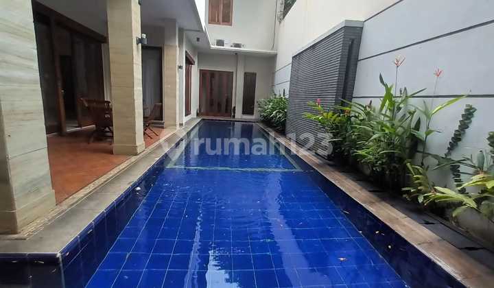 Disewakan rumah Pondok indah Luas tanah 507 m2 Luas bangunan 600 m2 kamar tidur 4 kamar mandi 4 2 kitchen Kamar tidur art 2 Kolam renang 3 lantai Basemant parkir 4 Fully furnished Hadap timur Listrik 23.000 watt Debih-Vivi Harga $4000/bln (nego)