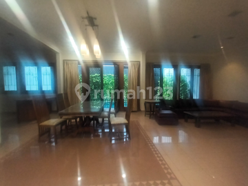 For rent pondok indah Luas tanah300 Luas bangunan250 3bdrm +1study Semi Furnished Pool, lokasi tenang depan taman 350jt/tahun nego