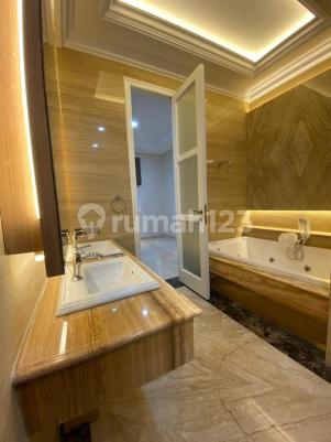 Jenis Rumah: Rumah Baru Mewah. SHM LT 627 M2 / LB + - 1050 M2. Hadap Selatan. Lingkungan tenang sangat privacy. 24-Hour Security lingkungan. Bangunan Baru (Brand New) 2.5 lantai Ruang tidur 5 + 2 K Mandi 5 + 3 Toilet Tamu/Powder Room Kitchen n Pantry Kolam Renang dgn taman/plaza luas utk pool side party. Garasi / Carport 5 mbl Private Security Post. Spesifikasi Bangunan Mewah dgn Material Kwalitas Terbaik : *Lantai Full Marmer Import *Tangga Marmer Import dan railling wrought iron (solid iron) *Pintu Gerbang n Pintu Utama megah dgn solid wrought iron *Kusen / pintu R dalam Kamper oven Tebal 5 cm Finishing Duco "Kusen pintu jendela Muka Alluminium YKK Nexta ex Japan *Rangka atap zink allum *Genteng Tamko import USA (garansi 20 tahun) *High Ceilling Modern Classic style * K. Mandi Full Marmer Import / Mosaic Import *Sanitary import 'Kohler'dan 'Grohe' *Bathtube cap. 2 person included Jacuzzi (Master bathroom) *Lampu Led n Lampu Crystal *Swimming pool full mosaic dgn fasilitas R bilas indoor dan outdoor. Harga 48M nego sampe deal