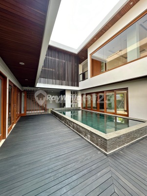 FOR SALE - PONDOK INDAH RUMAH BARU DESIGN MODERN LINGKUNGAN TENANG Luas Tanah 489 m2 Luas Bangunan 654 m2 Kamar tidur 5+2 Kamar mandi 5+1 Pos satpam + toilet Kolam renang Lift (panoramic) Lantai marmer import dan lokal Basement / garasi 5 mobil Carport 3 mobil Ac central VRV 16 PK Listrik 23,000 watt Kisi kisi dan pool deck kayu ulin Pintu kayu jati, merbau dan kusen merbau Parquet ruang keluarga kayu jati Rooftop Hadap Utara Hook
