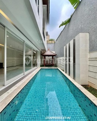 Dijual Rumah Brandnew dengan kolam renang, row jalan lebar di Pondok Indah, Jakarta Selatan. Luas Tanah 413 m2 Luas Bangunan 500 m2 Bangunan 2,5 lantai Kamar Tidur 4 Kamar Mandi 4 Attic Room 1 Kamar Tidur Pembantu 2 Kamar Mandi Pembantu 1 Swimming Pool Garasi 2 mobil Carport 2 mobil SHM Harga : IDR 21 M, Nego (21APPS9351-ET-IA) #97821