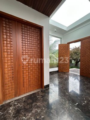 FOR SALE : Modern Tropical Minimalis Pdk Indah Jakarta Selatan spesifikasi : Posisi Hook Luas Tanah 489 m2 Luas Bangunan 654 m2 Kamar Tidur 5+2 kamar mandi 5+1 Pos satpam + toilet kolam renang Lift ( panoramic ) Lantai marmer import & lokal Basement 5 mobil carport 3 mobil Ac central Vrv 16 Pk listrik 23.000 kwh Kisi kisi & Pool Deck Kayu ulin Pintu Kayu Jati & merbau kusen Merbau Parquet kayu Jati. Rooftop Hadap Utara Lokasi sangat strategis : dekat Sekolah Bakti Mulya & Raflles international school, RS Pdk Indah & PIM surat SHM Harga 25 Milyar