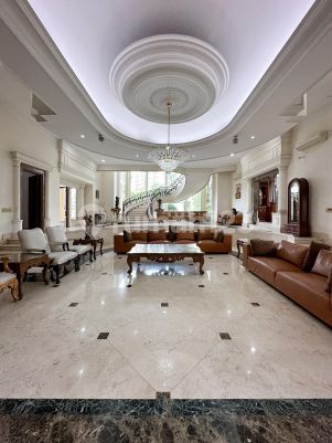 DIJUAL RUMAH LUX DESIGN EUROPEAN CLASSIC DI METRO PONDOK INDAH Luas tanah : 1.971 m2 Luas bangunan : 1.250 m2 Listrik : 23,000 watt Kamar tidur : 5 Kamar mandi : 5 Powder room : 1 Kamar tidur pembantu : 3 1 Swimming pool Hadap : Tenggara Garasi basement : 7 Mobil Carport : 5 Mobil Ka:KrM Harga Rp 87,5 Miliar Nego by Owner