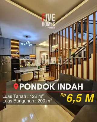 FOR SALE PONDOK INDAH JAK-SEL FURNISHED Dekat ke Pondok Indah Mall Row jalan 2 mobil Luas Tanah 122 m2 Luas Bangunan 200 m2 Bangunan 2,5 lantai & Rooftop Kamar Tidur 4+1 Kamar Mandi 3+1 Kitchen Set Listrik 7700 watt Carport 2 mobil Harga Rp 6.5 M More Info WA 0815981xxxx