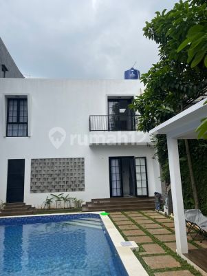 Disewakan rumah cantik ada foolnya di pondok labu Jakarta Selatan Lt210 Lb 121 + Dapur + 3 kamar tidur + 4 kamar mandi + 3 kamar mandi pakai water heater + 1 kamar mandi master bedroom pakai bathup + 3 unit AC 1PK + kolam renang ukuran 5x10 + carport cukup untuk 2 mobil & 1 motor + Listrik 5.500W Harga 150 juta pertahun,listingbumay