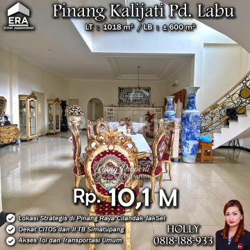 INFO UPDATE LISTING RUMAH MEWAH, LUAS, ASRI PINANG KALIJATI / RAYA CILANDAK JAKSEL Alamat: Jl. Pinang Raya / Pinang Kalijati Kel. Pondok Labu Kec. Cilandak JakSel Detail Properti: - Luas Tanah : 1018 m² - Luas Bangunan : ± 600 m² Keunggulan Lokasi: Lokasi Strategis, Asri dan Nyaman Harga: Rp. 10,1 Miliar Harga BELUM Termasuk biaya Pengosongan dan Balik Nama. (Harga di atas belum termasuk BPHTB 5%, biaya lelang 2%, Pajak Pemerintah 1%, dan PBB jika ada) **Kenapa Memilih Kami?** Dengan pengalaman 12 tahun di bidang lelang, kami menyediakan solusi satu atap untuk semua transaksi properti Anda. Proses yang jelas dan bersih sehingga Anda bisa tenang hingga serah terima. Hubungi Kami untuk Info Lebih Lanjut: - Holly: 081818xxxx - Ferry: 0816116xxxxLelangProperti #PropertiIndonesia #InvestasiProperti #PropertyInvestment #RumahDijual #AgentProperti #JakartaRealEstate #JualBeliProperti #EraIndonesia #AgenPropertiTerpercaya #Investasi #RealEstateAuction #JakartaSelatan #Rumahnyaman #RumahdijualJakartaSelatan #Cilandak #Rumahasri #Pondoklabu #Pinangraya