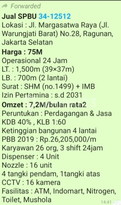 Spbu Termurah Cocok untuk Investor! Rate Omzet 7,2 M Perbulan Lokasi Strategis di Ragunan - Jakarta Selatan DIJUAL SPBU PASTI TERMURAH COCOK UNTUK INVESTOR Ragunan, Jakarta Selatan - LT 1500m (39x37m) - LB 700m (2 lantai) - SHM + IMB - Izin pertamina s.d 2031 - Omzet rate 7,2M/month Price Only : Rp7500000xxxxNego) KPR dibantu! Hubungi: Imelda - 0899700xxxx Gading Pro Kemang #Aray