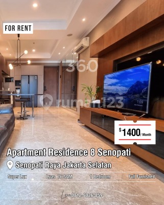 710240 Disewa Apartemen Residence 8 Senopati SCBD Super Lux Uk76 sqm Furnished at Jakarta Selatan Disewa Apartemen Residence 8 Senopati Super Lux Size 76 SQM 1 Bedroom 1 Bathroom Living Room Kitchen Full Furnished Located in the city center within the SCBD Senopati metropolitan area, South Jakarta. Very good and fully furnished (Air Conditioner, Water Heater, Marble Floor, Kitchen Cabinet, Stove, Cooker Hood & Fridge, Wardrobe, Fully interior). Facilities : Luxury Main Lobby, Reception desk, Swimming pool & kids pool, Cinema, Fitness centre, Tennis court, Jogging Track, Smart Card & Fingerprint Access, 24 Hours Security, Lounge & Cafe, Supermarket, Laundry Service, ATM Center, Meeting room function hall, Billiard, Yoga studio, Clinic, Integrated mall. Contact Linz today via DM or WA for further information or to schedule a visit. Rental Price : USD 1400/month *negotiable harga sewa per thn = 260jt per thn For more info and viewing this property do not hesitate to contact liz 0877xxxxxxxx