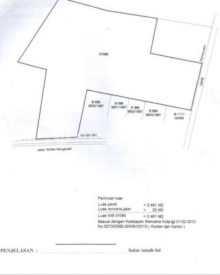 FOR SALE - TANAH KOMERSIAL WOLTER MONGINSIDI Detail Properti: - Sertifikat SHGB a/n PT (sampai 2034) - Luas Tanah 2.461 m² - Zona Komersial - Peruntukan Kantor / Apartemen - Sudah ada Blokplan & IMB - Rencana Bangunan: 5 Lantai + 1 Basement - Akses 2 muka jalan (Jl. Wolter Monginsidi & Jl. Senayan) Lokasi Strategis Dekat: - SCBD - Blok M - Senopati - Kuningan Harga Rp 35 Juta / m² (Belum termasuk PPN 11%)