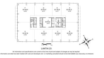 DIJUAL PLAZA OLEOS LT 11.248 LB - 69.748 ( Gross ) - 41.990,95 ( Semi Gross ) SHMSRS ( 2034 ) 18 Lantai & 4 Basements KETERANGAN : - Typical Floor Size 2100xxxx semigross ) - AC Daikin VRV System 8 zone / floor ( 720 BTU ) - Lift Mitsubishi 6 low zone lift ( GF - lt 16 ) 4 high zone lift ( lt 17 - 23 ) 1 Service Lift ( LG - 23 ) 2 Parking Lift ( B2 - GF ) - Fiber optic internet - Parking : Mobil 654 Motor 459 - Floor to Ceiling GF : 9.1 meter Typical 2.8 - 3.1 meter - Floor Load Limit GF : 800kg/sqm Typical 300kg/sqm Basement 800kg/sqm - PLN 4.000kva ; 110 VA/ sqm - Earthquake seismic rating Can withhold up to 9SR HARGA 808 M ( NEGO )