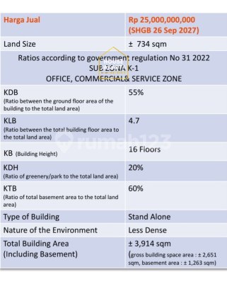 FOR SALE: TB SIMATUPANG. TANAH KOMERSIAL , IJIN 16 LANTAI, KAWASAN BISNIS LT: 734 m² Ijin Bangun 16 Lantai Ijin Gedung Kantor, Hotel, Klinik & Komersial Lainnya Dekat Cilandak, Pasar Minggu & Pejaten Area HGB PT Harga Rp 25 M (Rp 34 Juta/m²) === Ridho: 0817600xxxx IG: @housejakartaa Office: 0212237xxxx ********
