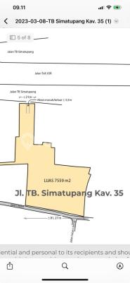 JUAL & SEWA TANAH DI TB. SIMATUPANG Lokasi seberang AD Premier. Untuk Gedung, Hotel, dan Bisnis lainnya. Luas Tanah : 7.000 m² (Lebar muka kurang lebih 65 m) KDB 55% KLB 6.39 Ijin bangun 12 lantai + 3 basement Sertifkat SHM Harga Jual : Rp 35 Juta/m² (Nego) Harga Sewa : Rp 75.000/m²/bulan (minimal sewa 3 tahun) Contact: AUDY 0815xxxxxxxx Call/WA/Text/Welcome for visit #H3326