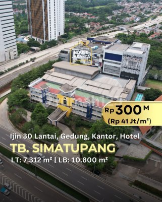 FOR SALE: TB. SIMATUPANG. TANAH DAN BANGUNAN KOMERSIAL, IJIN 30 LANTAI. BISA GEDUNG, KANTOR, HOTEL Luas Tanah 7.312 m² Luas bangunan 10.800 m² Bangunan Tahun 2004 (Direnovasi tiap tahun) Zona Ungu Komersial Tanah Persegi Ijin Bangun 30 Lantai Gedung Kantor, Hotel, Apartemen, RS & Bisnis Lainnya Strategis, Dekat Mall Citos dan Pondok Indah SHM Harga Rp 300 M (Rp 41 Juta/m²) Nego === Menerima Pemasaran Properti : 0817600xxxx IG: @housejakartaa Office: 0212237xxxx ********