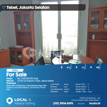 Akses Jalan 2 Mobil Lebar, Lokasi Strategis Sejajar Balai Sudirman, Auto 2000 Soepomo, Tol Pancoran, Rumah Sakit For Sale - Jual Ruko Prof. Dr. Soepomo Tebet, Jakarta Selatan Harga. Rp 750000xxxxJual) Deskripsi Properti. Akses Jalan 2 Mobil Lebar, Lokasi Strategis Sejajar Balai Sudirman, Auto 2000 Soepomo, Tol Pancoran, Rumah Sakit Luas Tanah. 85 m2 Dimensi. 5x17 Luas Bangunan. 340 m2 Sertipikat. SHM Kamar Tidur. 2 Kamar Mandi. 4 Garasi Mobil. 4 Hadap / View. Timur LOCAL X Kelapa Gading ******** ⓪②① ②⑨⓪⑥ ⑧⑤⑨⑤ P3KPG-0000xxxx-JW-J