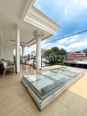 FOR SALE TEBET NICE MODERN CLASSIC HOUSE FURNISHED, PRIVATE POOL Detail : Luas Tanab 313 m² Luas Bangunan 505 m² Bangunan 2 Lantai Kamar Tidur 5 + 2 Kamar Mandi 5 + 1 Kolam Renang Taman Depan & Samping Internet & TV Cable Water Heater Solahart CCTV Listrik 7700 Watt Garasi 1 Mobil Carport 1 Mobil Hadap Barat SHM