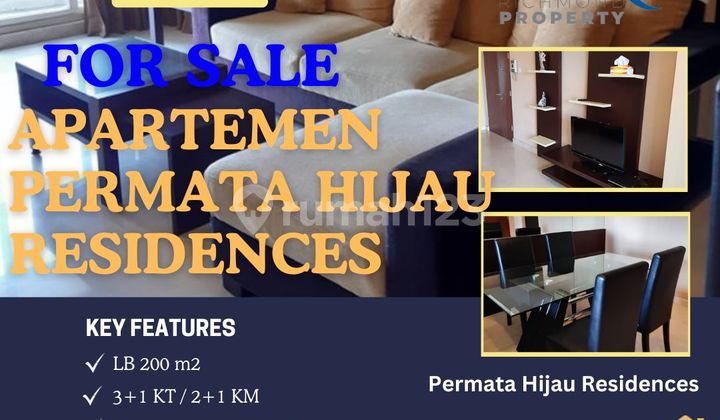 For Sale Luxury Apartement Permata Hijau Residences. Harga Market : 8 M Jual hanya di 2 M NEGO SAMPAI JADI ! 3+1 Bedroom 2+1 Bathroom LB : 200 m2 Full Furnished Sofa, Bed, Kitchen Set, Dining Table, Etc Lokasi Sangat Strategis