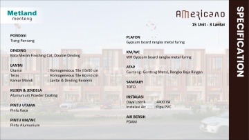PELUANG INVESTASI TERBAIK! RUKO AMERICANO 3 LANTAI Ruko Americano hadir di kawasan premium metland menteng dengan desain arsitektur timeless yang megah, menawarkan 3 lantai ruang usaha. Konsep stylish ala New York ini akan menjadi daya tarik utama dan landmark baru di kawasan anda, menjamin visibilitas tinggi dan lalu lintas pelanggan. Spesifikasi : Type A Dimensi : 5 x 10 Luas Tanah : 100 m² Luas Bangunan: 117 m² Posisi : Badan Kamar Mandi 2 Listrik 4400 watt Keunggulan Ruko - Berada di pusat area komersial Metland Menteng yang sangat ramai dan berkembang - Desain modern dan layout bangunan yang fleksibel untuk berbagai jenis usaha - Akses jalan lebar, memudahkan mobilitas pengunjung maupun operasional bisnis - Potensi nilai investasi tinggi dengan prospek pertumbuhan kawasan yang pesat - Cocok untuk bisnis F&B, minimarket, klinik, salon, kantor, hingga showroom - Tidak banjir - Lingkungan yang asri dan hijau - Dikelilingi komplek Perumahan Mewah Berada di dalam kawasan terpadu Metland Menteng Cakung, Ruko Americano mendapatkan keuntungan akses langsung ke: - 3 menit ke Stasiun MRT Fase 3 Cakung - Tol Jakarta-Cikampek dan JORR serta Toll Tanjung Priok. - Stasiun KRL Cakung - Akses mudah ke Jakarta Garden City, Bekasi & Harapan Indah, Kelapa Gading - 5 menit ke gerbang tol JORR Cakung Timur - Fasilitas sekitar kawasan dekat dengan AEON, IKEA, Sekolah Global Mandiri, Food Garden, Modern Market, Rumah Sakit Mayapada (on progress), SIS (Singapore International School), Sekolah Global Mandiri & St. Yoseph, Mcdonald, Mie Gacoan, MCD, Sambal Bakar, Pizza Hut, A&W, Richeese, Padang Sederhana, SPBU BP & Shell, B-Quick, Children Playground, Mini Forest, Taman Semut, Solaria (soon), Kampung Kecil, Hachi Grill (Soon) dll. Start From Rp. 4M-an Free AC 5 Unit *S&K Berlaku. -L JANGAN TUNDA!! Dapatkan harga dan unit terbaik sebelum diluncurkan secara resmi. Unit Terbatas!! Hubungi kami sekarang juga dan amankan unit impian anda! Telp/WA : Nancy, 08122588xxxx