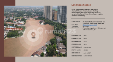Jual Tanah Murah di Transyogi Cibubur Samping Trans Studio Mall Dijual Tanah Kavling di Transyogi Cibubur Luas Tanah 80.628 m Bisa dibeli setengahnya Lokasi dalam Kawasan Strategis, Di Jalan Raya Alternatif Cibubur, Cocok untuk dibangun berbagai Usaha, Sebelahan dengan Trans Mall Cibubur, Selangkah ke Pintu Tol Cibubur Dijual Murah Hanya 6,5 juta/meter Shgb 2034 ******** lebar muka -+18 meter lebar samping: 100 meter KDB: 60% KLB: 6.00 KDH: 20% KTB: 60% KKOP: 15 METER