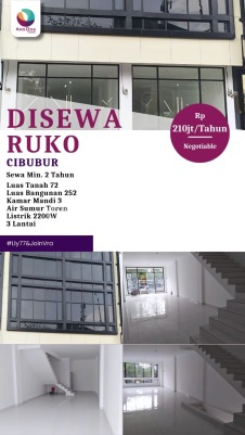 Ruko di Cibubur, Jakarta Timur. Disewakan di wilayah yang nyaman. Dengan rinciannya adalah sebagai berikut: - Kamar Mandi: 2 - Sertifikat: SHM - Sertifikat Hak Milik - Kondisi Perabotan: Unfurnished - Sewa per 2th Dan properti ini juga unggul karena: - Siap Huni. - Bebas Banjir. - Dekat Akses Transjakarta. - Dekat Akses Bus Kota. - Dekat Akses LRT. - Dekat Pusat Perbelanjaan. - Dekat Sekolah Internasional. - Dekat Sekolah Negeri. - Dekat Universitas. - Dekat Fasilitas Kesehatan. - Dekat Tempat Wisata. - Dekat Tempat Ibadah. - Dekat Taman Kota. - Dekat Landmark. - Lokasi di Pusat Kota. - Lokasi Pinggiran Kota. - Dekat Kawasan Bisnis & Industri. - Adem & Sejuk. - Pemandangan City View. - Cocok Untuk Investasi. - Aset Kepemilikan Pribadi (Tangan Pertama). - Properti Bisa Nego. - Akses Jalan Muat 2 Mobil. - Lokasi Strategis. - Lokasi Bebas Banjir. Keberadaan ruko ini dekat fasilitas umum, hanya selangkah menuju berbagai fasilitas utama dan menarik. Dengan Rp. 21000xxxx/th, anda bisa langsung dapatkan ruko eksklusif di daerah Cibubur ini. Tersedia juga untuk rental period Yearly.
