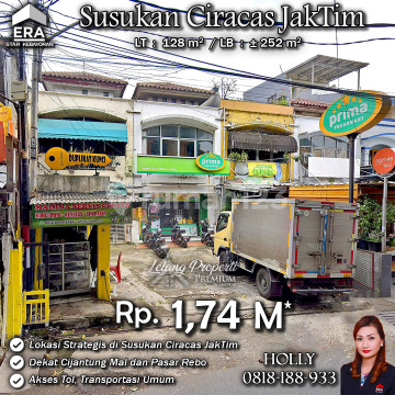 INFO UPDATE LISTING RUKO 3 LT STRATEGIS UNTUK USAHA SUSUKAN CIRACAS JAKARTA TIMUR Alamat: Jl. Suci Kel. Susukan Kec. Ciracas JakTim Detail Properti: - Luas Tanah : 128 m² - Luas Bangunan : ± 252 m² Keunggulan Lokasi: - Lokasi Strategis di jalan raya cocok untuk usaha Harga: Rp. 1,74 M (CASH ONLY) Harga SUDAH Termasuk biaya Pengosongan dan Balik Nama. (Harga di atas belum termasuk BPHTB 5%, biaya lelang 2%, Pajak Pemerintah 1%, dan PBB jika ada) **Kenapa Memilih Kami?** Dengan pengalaman 12 tahun di bidang lelang, kami menyediakan solusi satu atap untuk semua transaksi properti Anda. Proses yang jelas dan bersih sehingga Anda bisa tenang hingga serah terima. Hubungi Kami untuk Info Lebih Lanjut: - Holly: 081818xxxx - Ferry: 0816116xxxxLelangProperti #PropertiIndonesia #InvestasiProperti #PropertyInvestment #RumahDijual #AgentProperti #JakartaRealEstate #JualBeliProperti #EraIndonesia #AgenPropertiTerpercaya #Investasi #RealEstateAuction #JakartaTimur #Rukodijual #RukodijualJakartaTimur #cibubur #ciracas #susukan