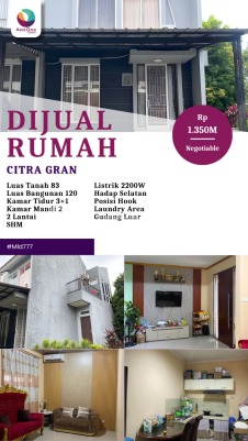 Rekomendasi properti dengan penawaran terbaikRumah123 adalah situs teknologi jual beli dan sewa properti terdepan di Indonesia, yang hadir sejak tahun 2007 dan telah melayani jutaan orang di Indonesia. Rumah123 senantiasa berkomitmen untuk membuat pengalaman 'Jual Beli dan Sewa Properti Lebih Mudah' dengan dukungan dari developer terkemuka serta agen profesional.