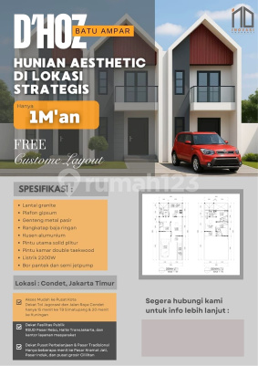 RUMAH TERMURAH BISA KPR DI D'HOZ DI CONDET BATU AMPAR JAKARTA TIMUR CUSTOME LAYOUT BISA 2 KAMAR, BISA JUGA 3 KAMAR INDENT 6 BULAN 2 Lantai Luas Tanah 50-70 Luas Bangunan 60 3 Kamar Tidur 2 Kamar Mandi 1 Carport Tidak Banjir Sertifikat SHM Dekat ke Kp Rambutan Dekat ke Cililitan Dekat ke Tol Taman Mini Dekat ke RSUD Kramat Jati Dekat ke Perkantoran TB Simatupang Condet Kramat Jati Jakarta Timur HARGA MULAI 1.165M HANYA YANG SERIUS HUBUNGI ARIF S