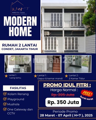 RUMAH BARU WHITE CASA RESIDENCE CONDET KRAMAT JATI JAKARTA TIMUR TERMURAH SE-JAKARTA 2 Lantai Luas Tanah 20-25 Luas Bangunan 40-50 2 Kamar Tidur 1 Kamar Mandi Bebas Banjir 1 Dapur 1 Parkir Motor Tidak Ada Carport Sertifikat SHM | IMB | PBB HARGA SUDAH TERMASUK : PPN (11%) BPHTB (5%) Notaris (1%) Biaya Balik Nama (1%) Termasuk SHM | PBB | IMB Fasilitas : Mushola Kolam Renang One Get System Keamanan 24 Jam Taman Bermain Anak Blok A : Fasum Blok B : Mushola Blok C : Private Note : Boleh Beli 2 atau 3 Kavling Dekat ke Condet Raya Dekat Mall PGC Cililitan Dekat ke RSUD Kramat Jati Dekat ke Tol Jagorawi & TMII Dekat ke Stasiun Pasar Minggu Dekat ke Terminal Kp Rambutan Dekat ke Stasiun LRT Taman Mini Lokasi Condet Kramat Jati Jakarta Timur HARGA MULAI 370JTAN HANYA YANG SERIUS HUBUNGI ARIF S