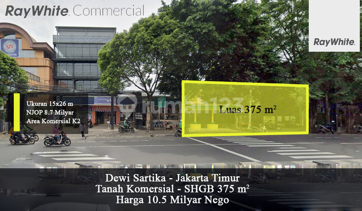 Dijual Tanah Komersial K2 di Dewi Sartika Raya Jakarta Timur Luas Tanah 375 m2 Lebar 15 x 26 meter Sertifikat HGB Zona Komersial K2 Cocok untuk Kantor, resto dan Showroom Harga mendekati NJOP Harga 10.5 Milyar Nego