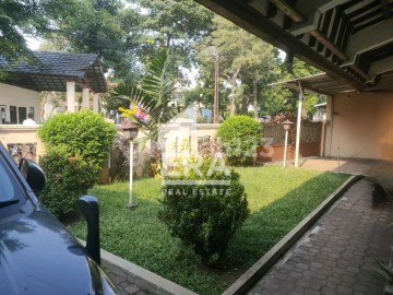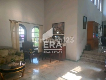 rumah 2 lantai yang nyaman dan asri dengan banyak ruang terbuka dan lapangan badminton. garasi untuk 2 mobil dan carport bisa untuk 3 mobil. lokasi strategis.