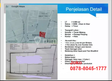 DIJUAL CEPAT Tanah Komersial Jl. Bintara Jaya, Pondok Kelapa, Duren Sawit, Jakarta Timur Spesifikasi: - Luas Tanah : 5.568 M2 - SHM - Lebar: 48 Meter - Hadap Timur - Bebas Banjir - Lokasi jalan raya BISA DIBELI 1.400 meter atau 2.800 Meter Lokasi Istimewa: - Dekat Apartemen Kelapa Vilage & Aparteman Nuansa Pondok Kelapa - Dekat Pintu Tol Bintara - Dekat Rumah Sakit islam pondok kopi - Dekat Giant Pondok kopi - Dekat Stasiun Cakung dan Stasiun Pondok kopi Cocok Untuk: - Gedung Perkantoran - Hotel / Rumah Kost Mewah - Rumah sakit - Sekolah - SPBU - Pusat perbelanjaan / Mini Market - Hunian - Pool taxi, Pool Truck atau Pool Bus # Harga : 13 Juta / m2 (Masih Nego) More Info: Joko 0878xxxxxxxx Terima titip Jual, Beli dan Sewa Properti