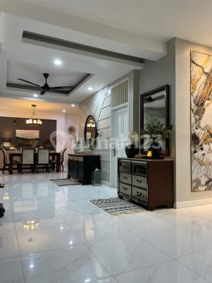 - 2 Lantai - Asri, Aman dan nyaman - Security 24 jam - Akses Jalan 2 mobil - Surat SHM - Baru Renovasi - Luas Tanah: 214 M2 - Luas bangunan: +/- 330 M2 Lantai Atas: - 1 kamar Tidur Utama dengan kamar mandi dalam) Luas kmr +/_ 40/50M2 dengan balkon. - 1 kamar tidur anak dengan kamar mandi dalam - 1 Kmr tidur tanpa kmr mandi dalam - 1 Kamar mandi ART - Ruang TV - Ruang Cuci - Gudang ukuran 4.5 x4.5 Lantai Bawah: - 1 kmr tidur utama (Kmr mandi dalam) 1 Powder Room (Ruang tamu) - Ruang tamu - Ruang Maroko (Lesehan) - Ruang TV - Dining Room - Dapur plus kitchen set - Teras dan taman - Gudang Furnished: - Kitchen Set ( msh gress. Pemakaian baru 1.5 thn - 2 Lemari pakaian panjang 3 meter. - Kabinet Rak Buku - Kabinet Coffee Corner - Kabinet Kulkas - 2 kabinet pajangan - 2 AC Parkir Mobil di depan rumah. bisa menampung 5 mobil. Semi Furnished #221374
