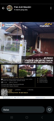 Dijual rumah nyaman di dalam komplek kawasan Jakarta Timur dengan kondisi bangunan sangat terawat dan kokoh. Cocok untuk hunian keluarga yang mengutamakan kenyamanan dan akses mudah. Spesifikasi: 1,5 Lantai Kondisi bangunan sangat bagus Struktur kokoh Berada dalam komplek Bebas banjir Harga belum termasuk harga paket tambahan Rumah ini memiliki tata ruang yang nyaman dengan pencahayaan alami yang baik, siap langsung ditempati tanpa perlu renovasi besar. Keunggulan Lokasi: v Dekat stasiun v Dekat pasar v Lingkungan komplek aman & nyaman v Bebas banjir (nilai plus penting) v Akses mudah ke berbagai fasilitas umum Hunian dalam komplek dengan kondisi siap huni dan bebas banjir seperti ini sangat diminati di Jakarta Timur.