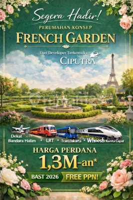 Coming Soon our Phenomenal Ciputra Project at Halim Jakarta . The First French Garden Concept Facade : French Style Prime location, hanya 10 menit dari: JORR 1 TMII Transjakarta Pinang Ranti Bandara Halim Perdanakusuma TMII Keong Mas TMII (Green Terrace - Tamini Square) RS Brawijaya Masjid At-Tin TMII Travoy Hub LRT Royal Golf Halim Price Start From 1.3 Milyard Luas 60 Meter - 120 Meter Free PPN Subsidi DP Subsidi Biaya Surat2 Tersedia 5 type : Lebar 6x10 : 1 lantai : 1.3 M an Lebar 5x12 : 2 lantai : 1.5 M an Lebar 6x12 : 2 lantai : 1.8 M an Lebar 7x12 : 2 lantai : 2.1 M an Lebar 8x12 : 2 lantai : 2.4 M an Lebar 8x15 : 2 lantai : 2.8 M an *Harga Estimasi ya ini, untuk harga pasti nya nanti setelah PK* Hubungi: Ven - 0858xxxxxxxx Gading Pro Pondok Indah