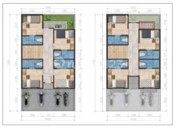LT 66m² LB 91m² 8 Kamar tidur 8 kamar Mandi Dalam Parkir Motor( up to 6 unit) Dapur Jendela tiap Unit Toilet duduk dan shower Area Jemur (Lt. 2) Koridor 1,1 Meter cocok untuk karyawan dan management sekitar seperti RS Mayapada Aeon Mall dan IKEA. dan Karyawan pergudangan Bizpark